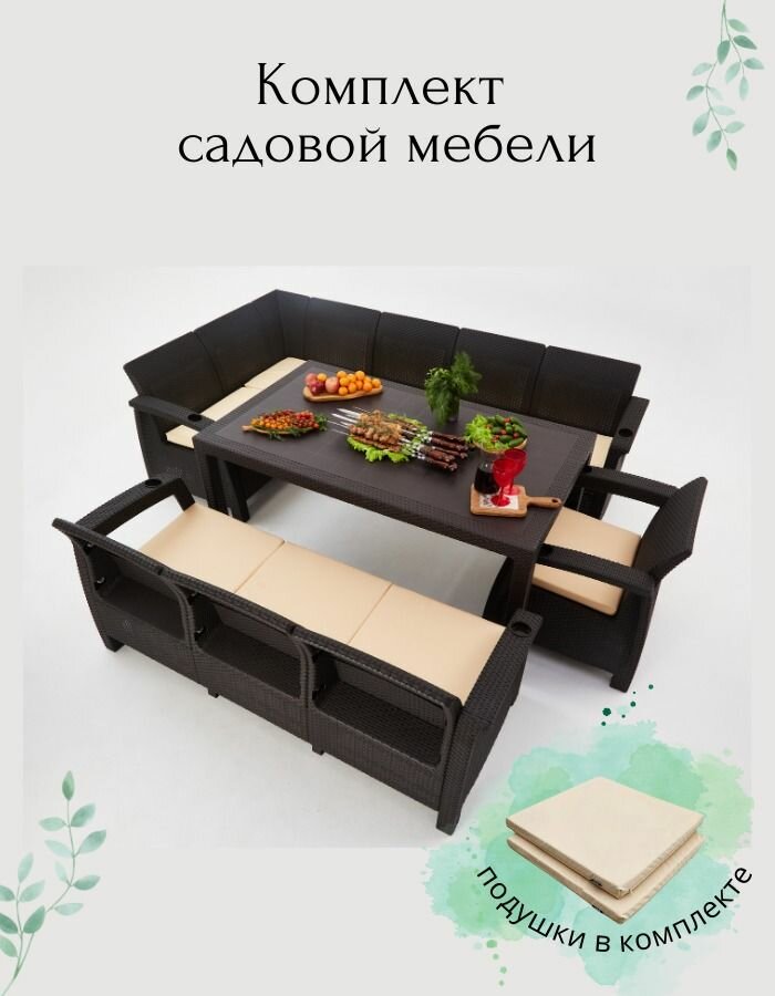 Комплект садовой мебели HomlyGreen 5+3+1+обеденный стол 160х95, с комплектом бежевых подушек интересное: