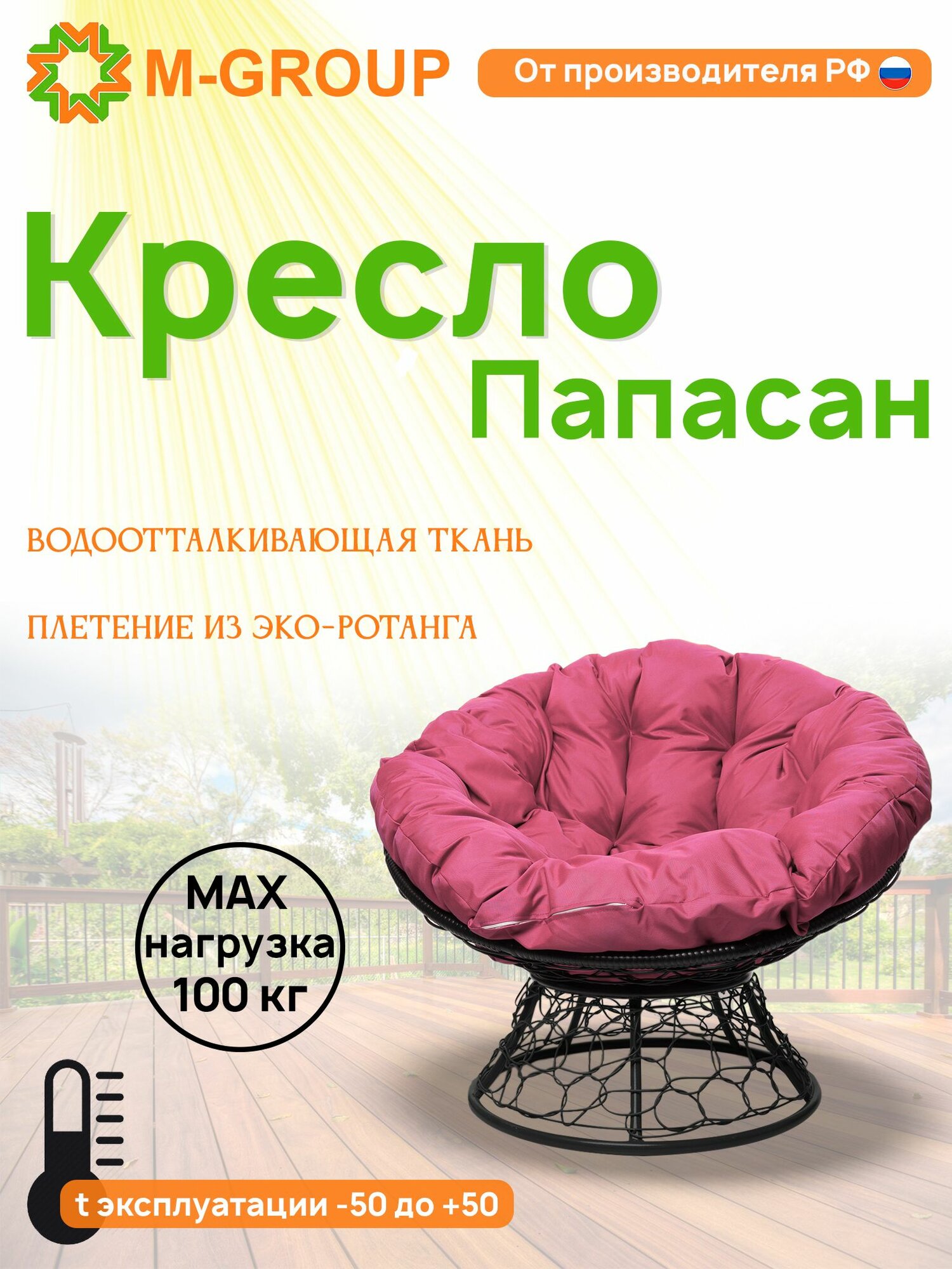 Кресло "Папасан" с ротангом черное / розовая подушка M-Group