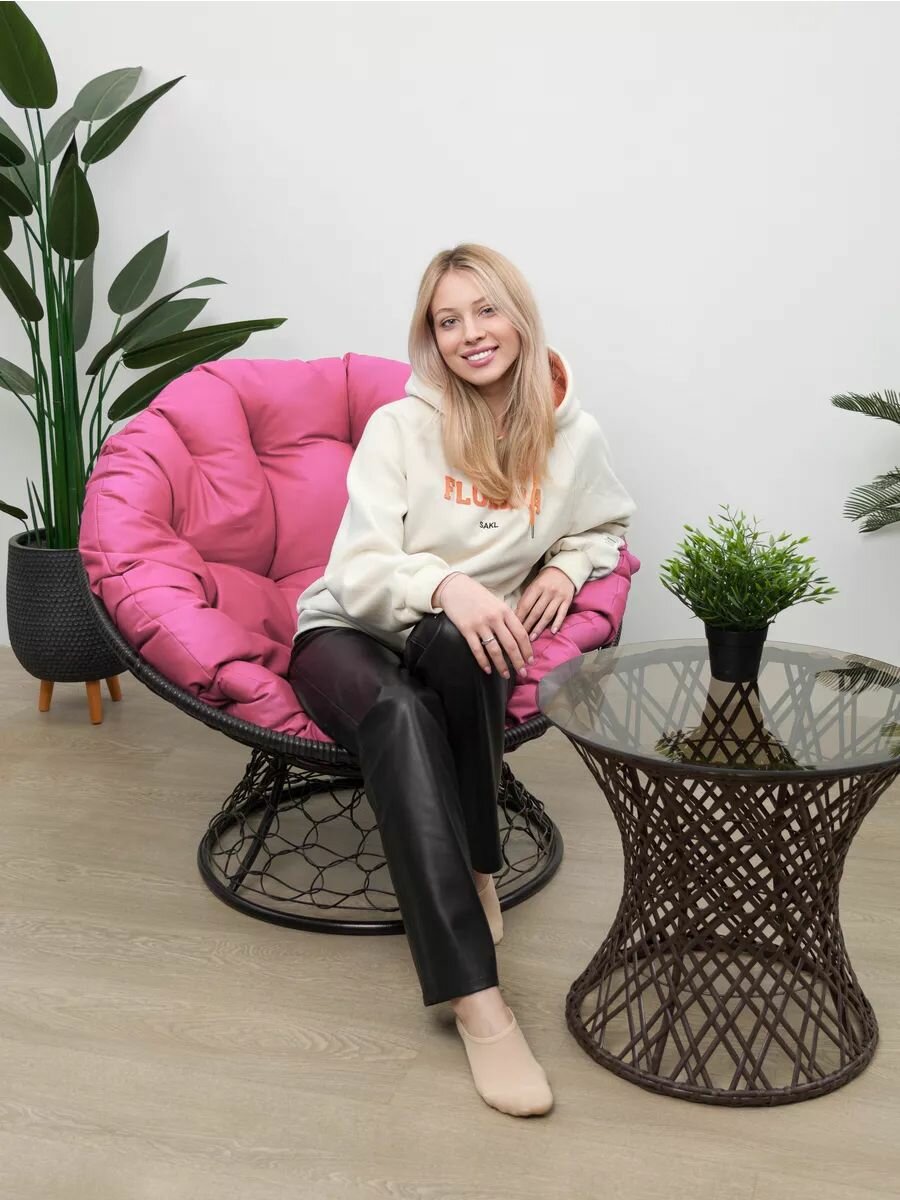 Кресло папасан с ротангом чёрное, розовая интересное: