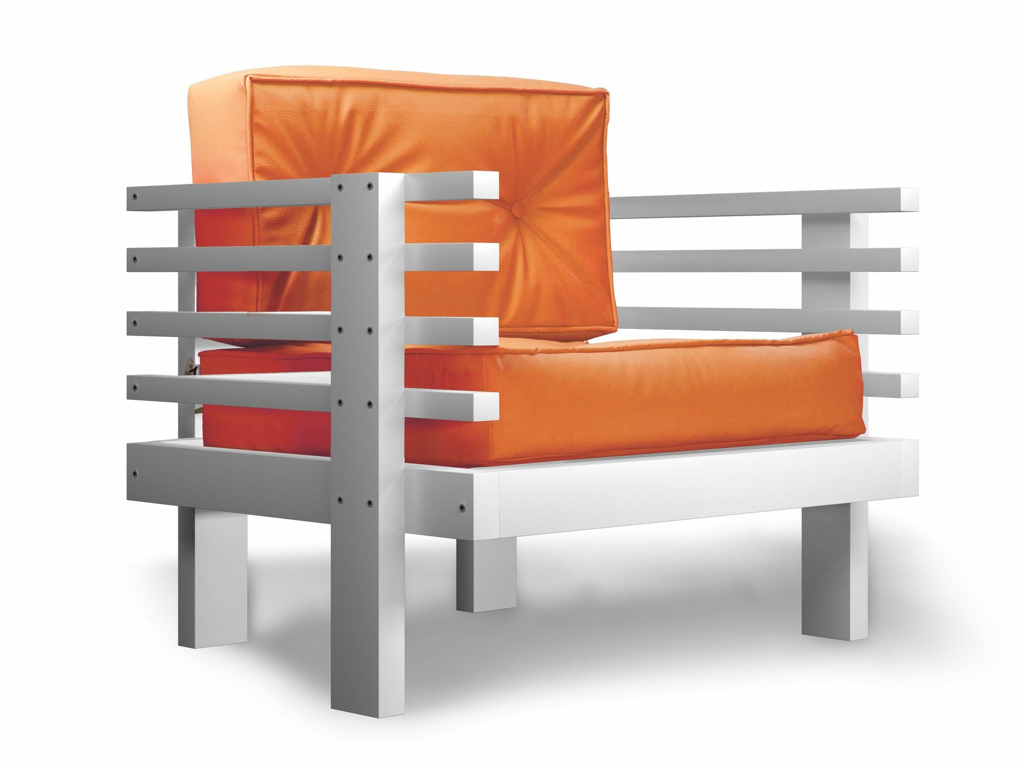 Садовое кресло стоун-с, оранжевая-белая эмаль, кожзам, деревянное, мягкое, для дачи, для кафе и бара, на веранду, в террасу, для бани