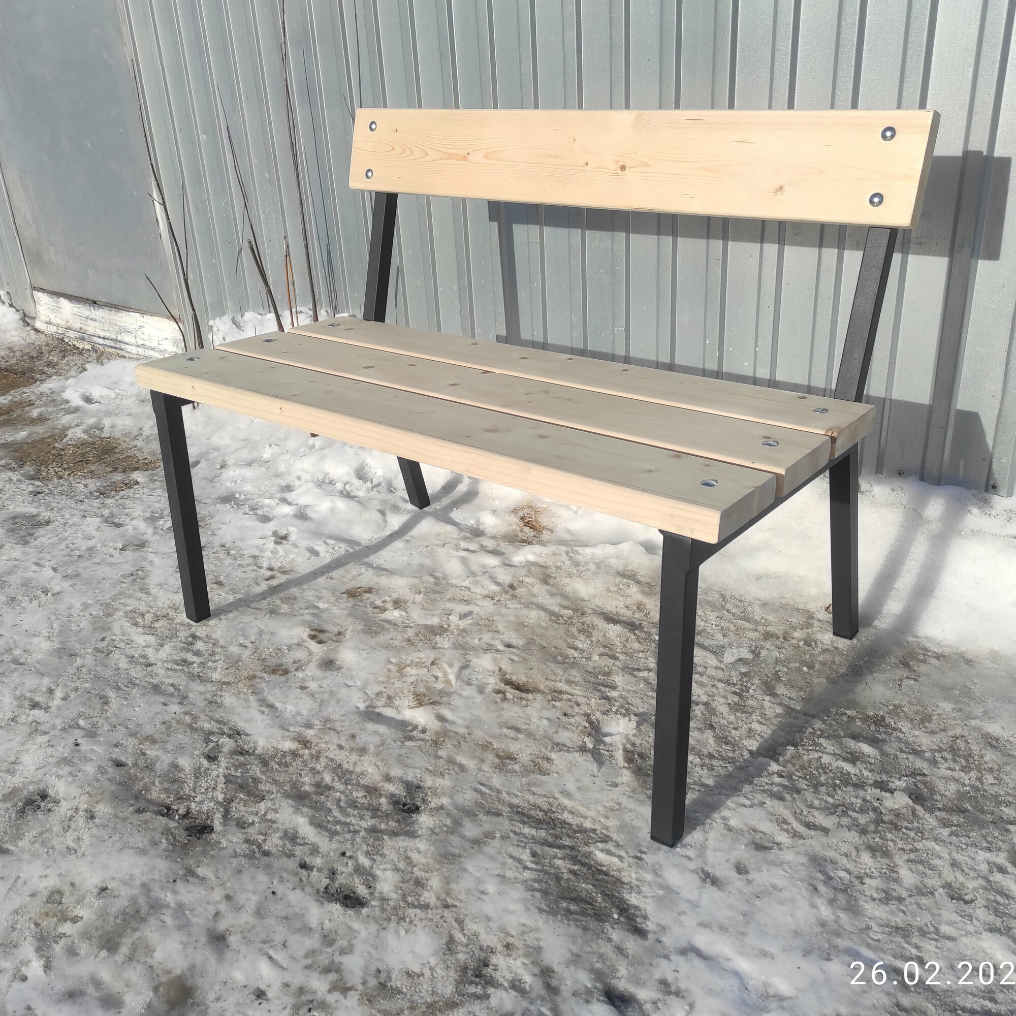Скамейка садовая Классика с деревянными спинкой и сиденьем без покраски, лавочка для дачи с металлическим каркасом