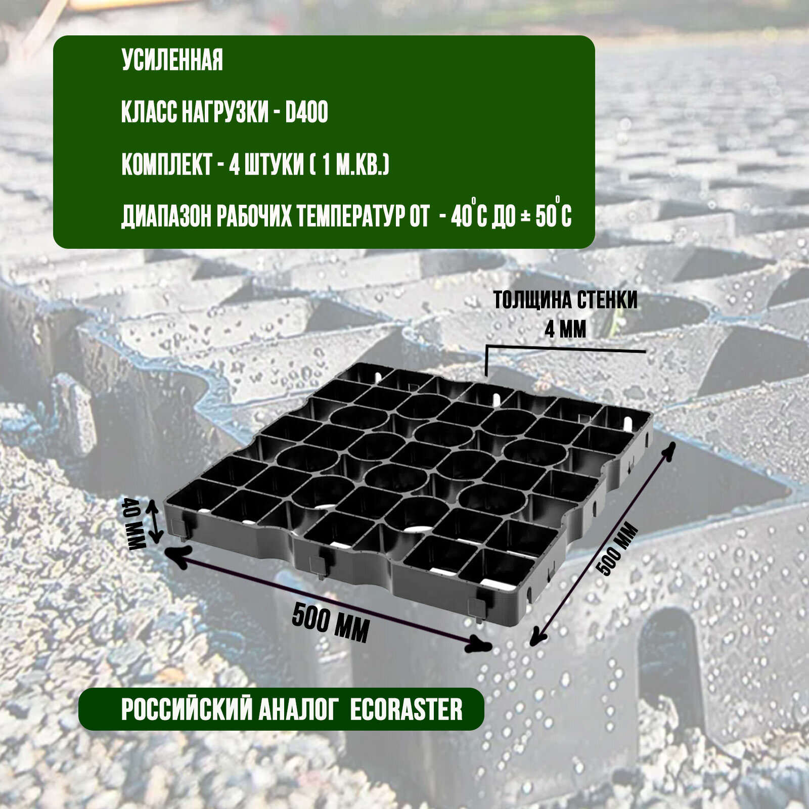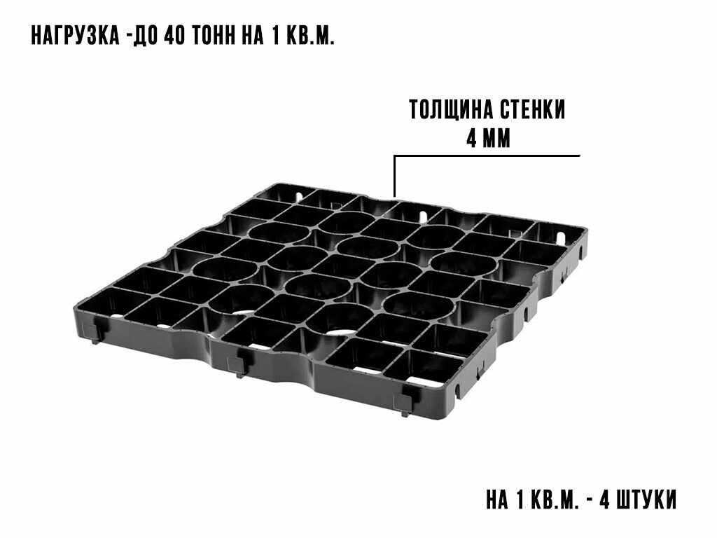 Газонная решётка усиленная 500х500х40 мм комплект 4шт цвет чёрный интересное:
