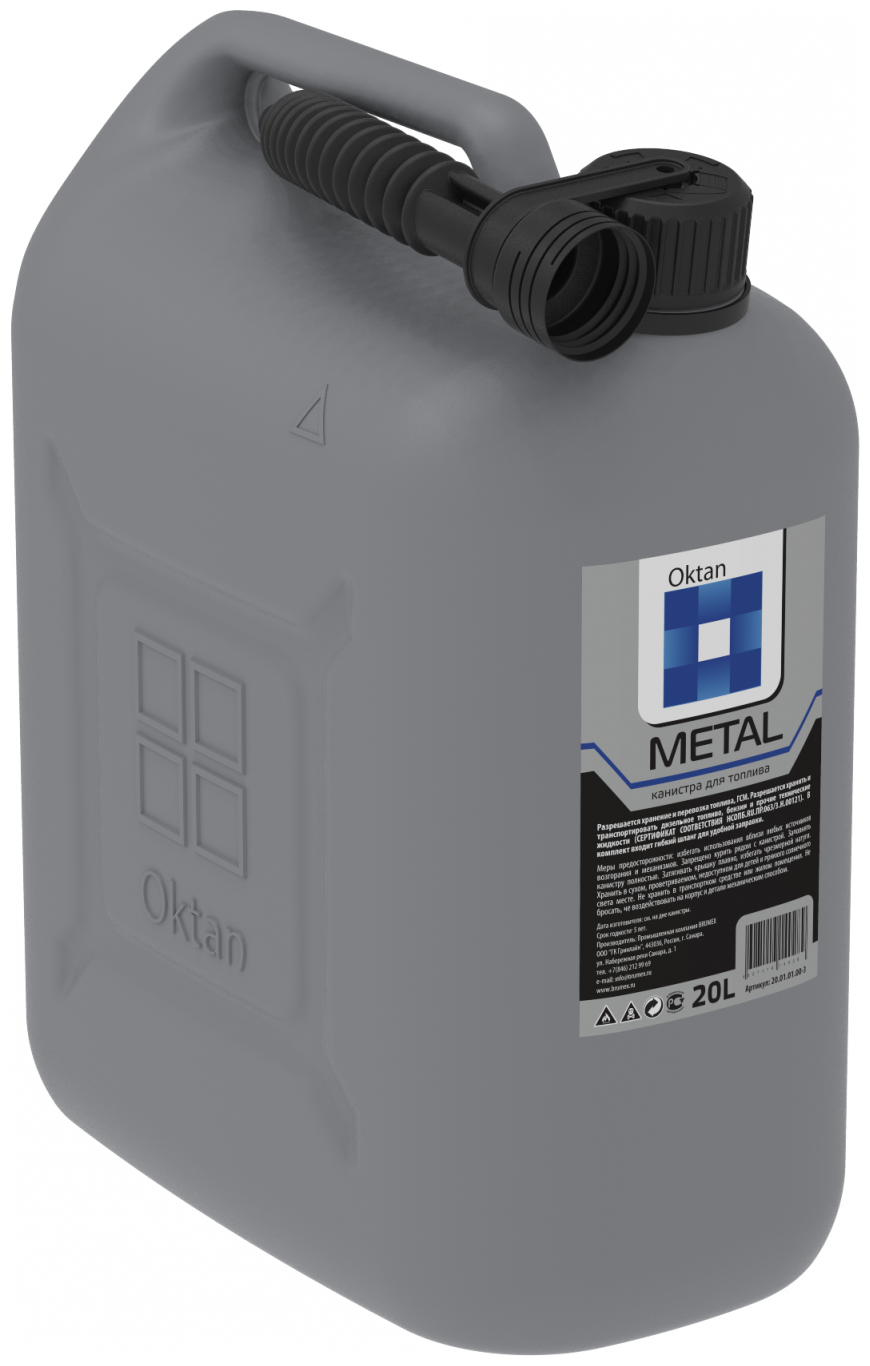 Канистра пластиковая 20 л для бензина, дизеля и других ГСМ, OKTAN 20 серая