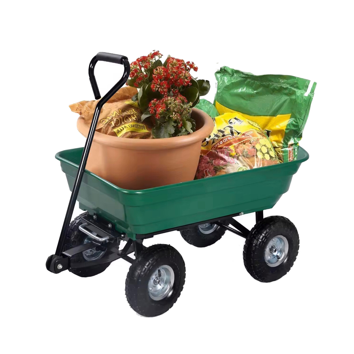 Купить Тележка для сада 4-колесная с кузовом 80 литров