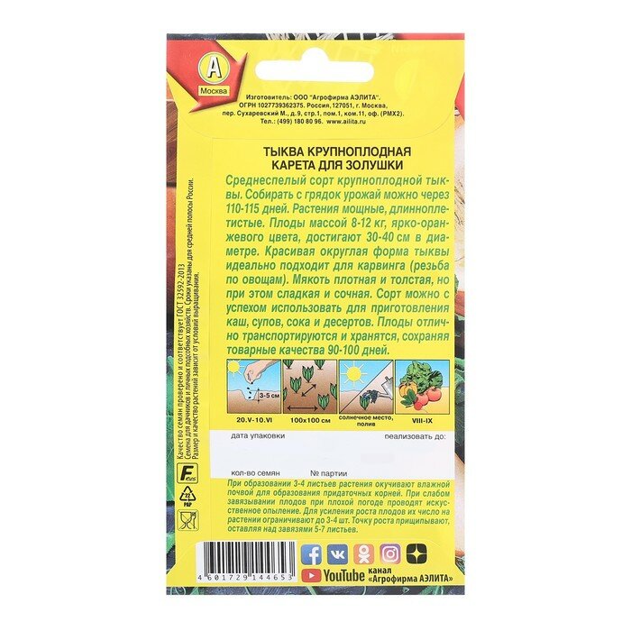 СохранитьСемена Тыква Карета для золушки крупноплодная 2г (Аэлита) интересное: