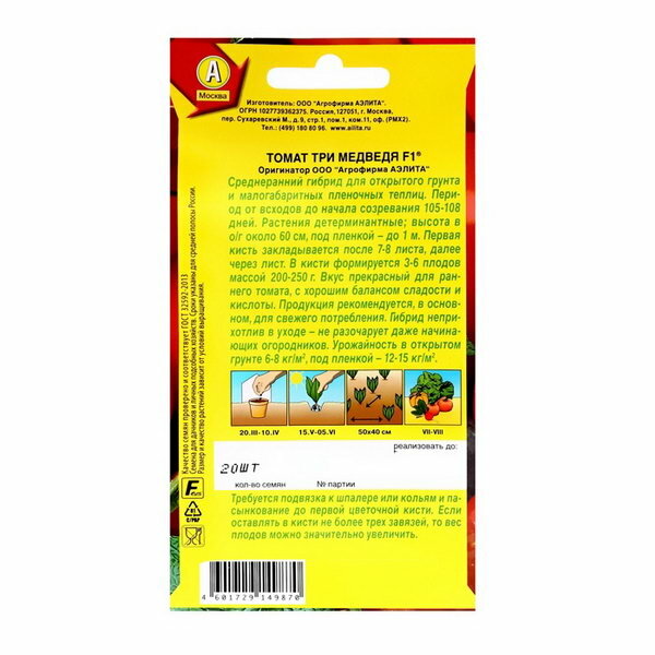 Купить Семена Томат "Три медведя" F1, ц/п, 20 шт