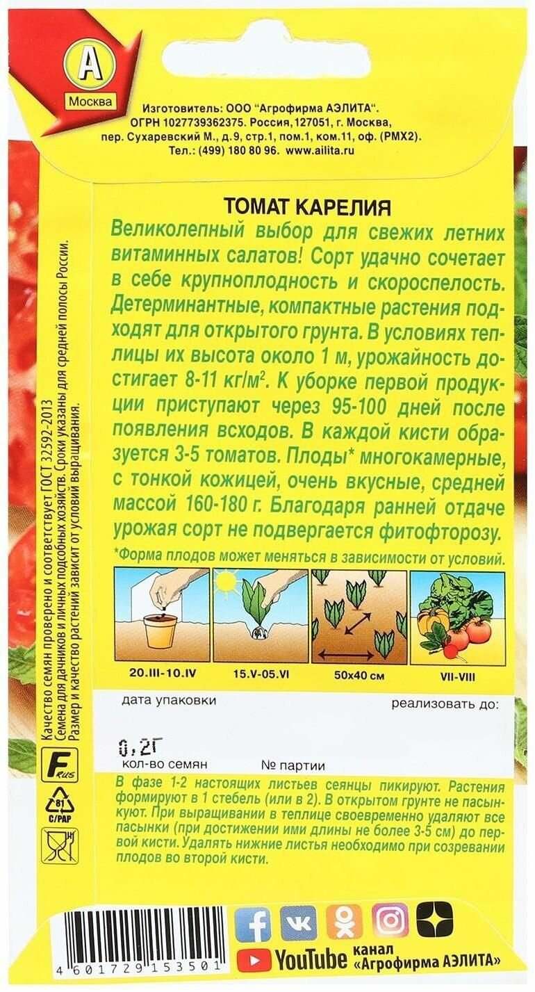 Купить Семена Томат "Карелия", Томаты для салата, 0,2 г