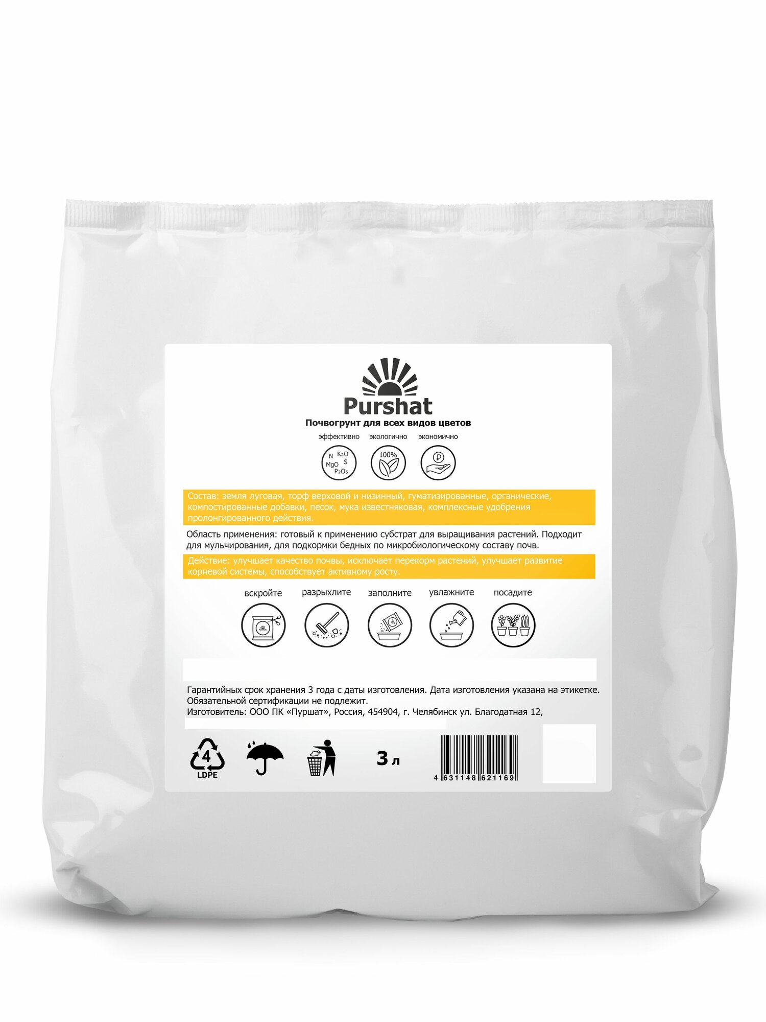 Купить Грунт (земля) для комнатных и садовых цветов Пуршат (на основе биогумуса). Почвогрунт с торфом и биогумусом (Purshat) 3 л