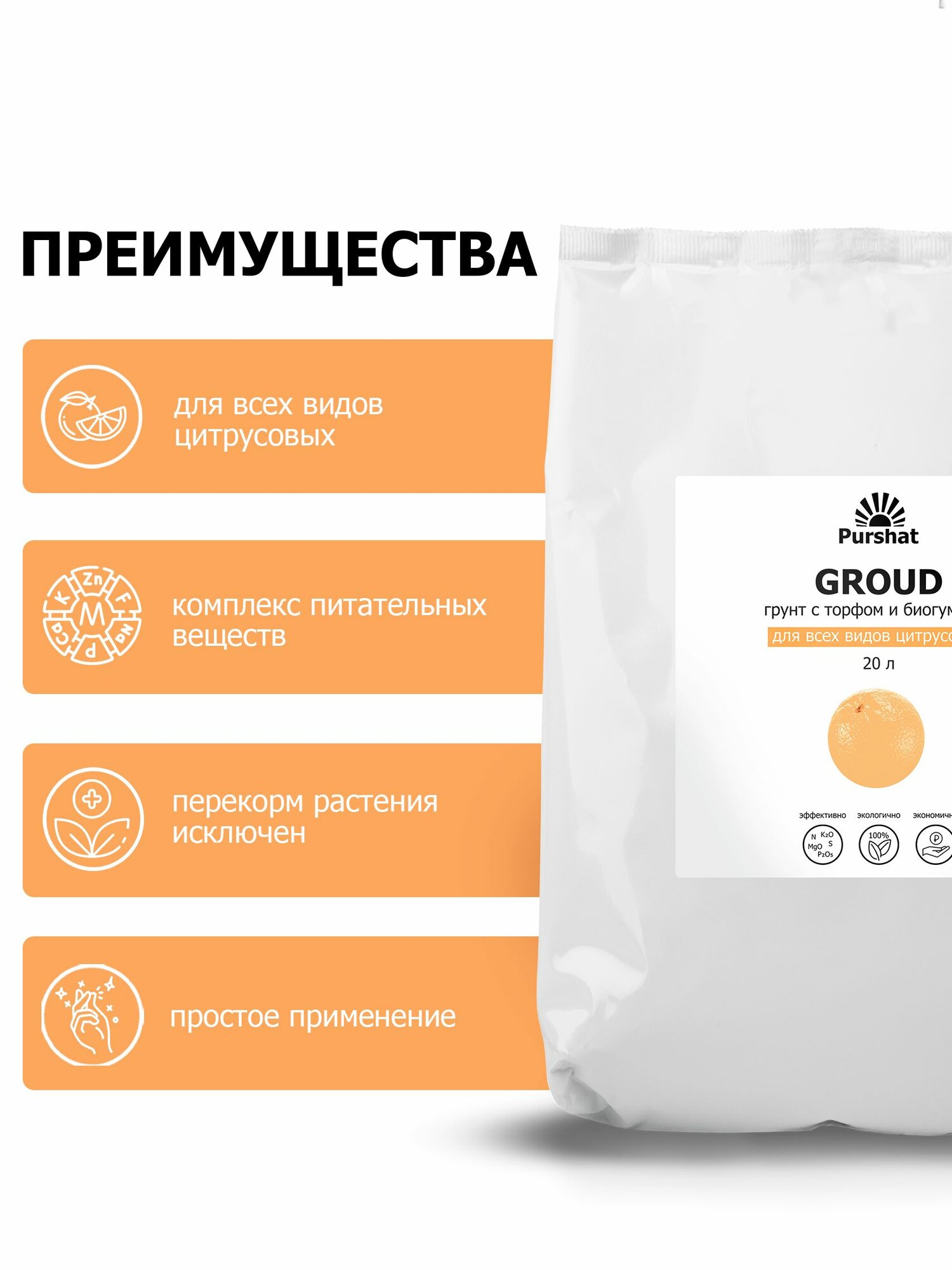 Купить Грунт (земля) для цитрусовых (лимон, мандарин, авокадо) Пуршат 20 л. Питательный почвогрунт с торфом и биогумусом (Purshat)