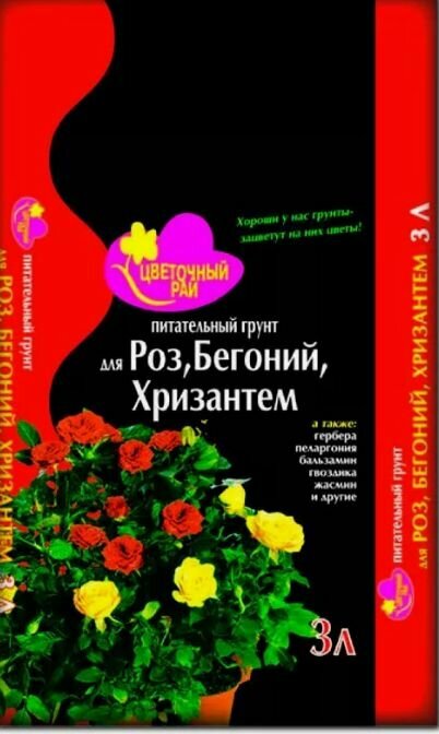 Грунт для Роз, Бегоний и Хризантем "Цветочный рай", 3 л