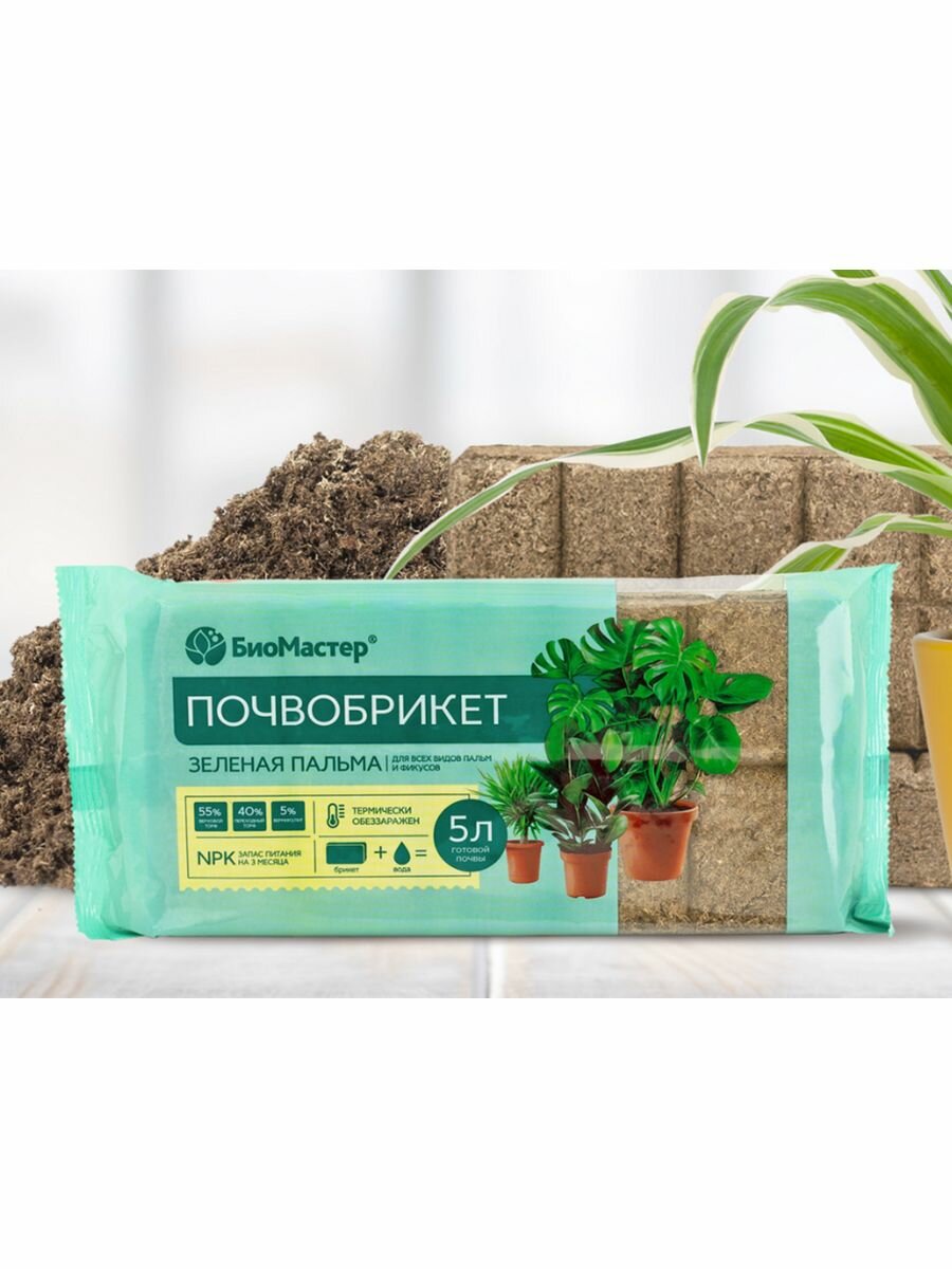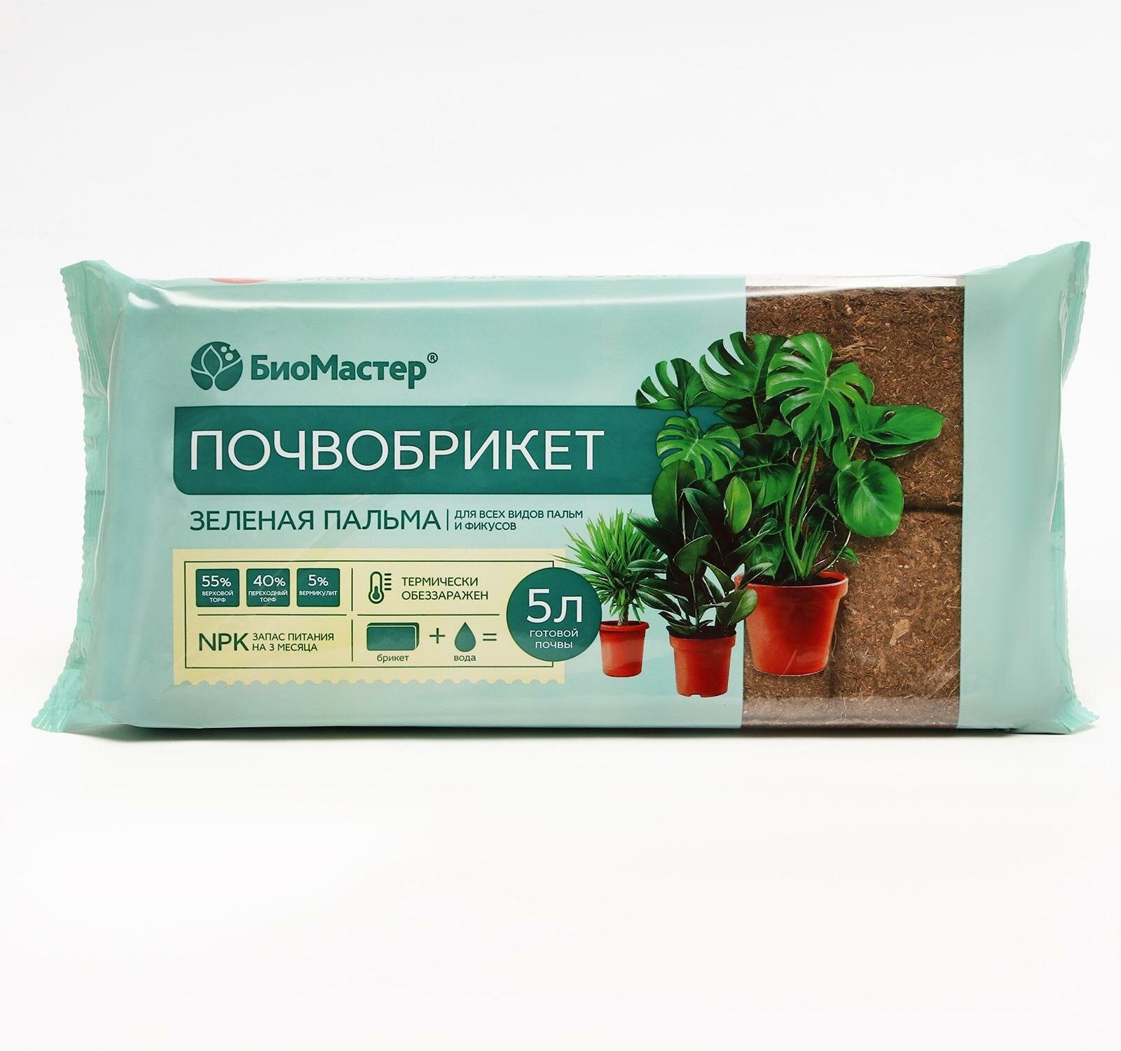 Почвобрикет БиоМастер Зеленая пальма 5л, 3 шт