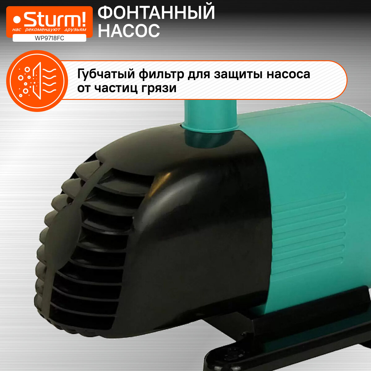 Насос фонтанный Sturm! WP9718FC 18Вт, 15 л/мин, напор 1,4м, глубина погружения 3м интересное: