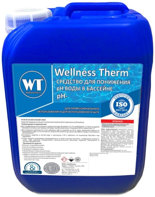 Средство «Wellness Therm» для понижения PH воды в бассейне (PH -) 10 литров