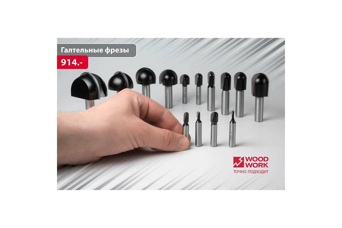 Фреза с радиусным торцом R=12.7 мм, 25.4х73 мм, S=12 мм WOODWORK 914.1232.12