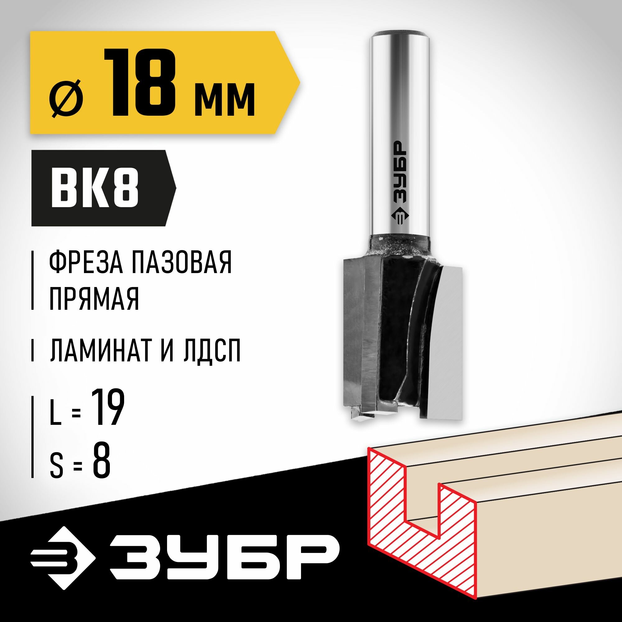 Купить ЗУБР 18 x 19 мм, хвостовик 8 мм, фреза пазовая прямая Профессионал