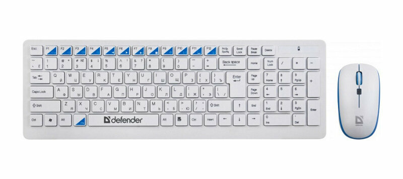 Набор беспроводной DEFENDER Skyline895, клавиатура, мышь 2 кнопки + 1 колесо + 1 dpi, белый/голубой