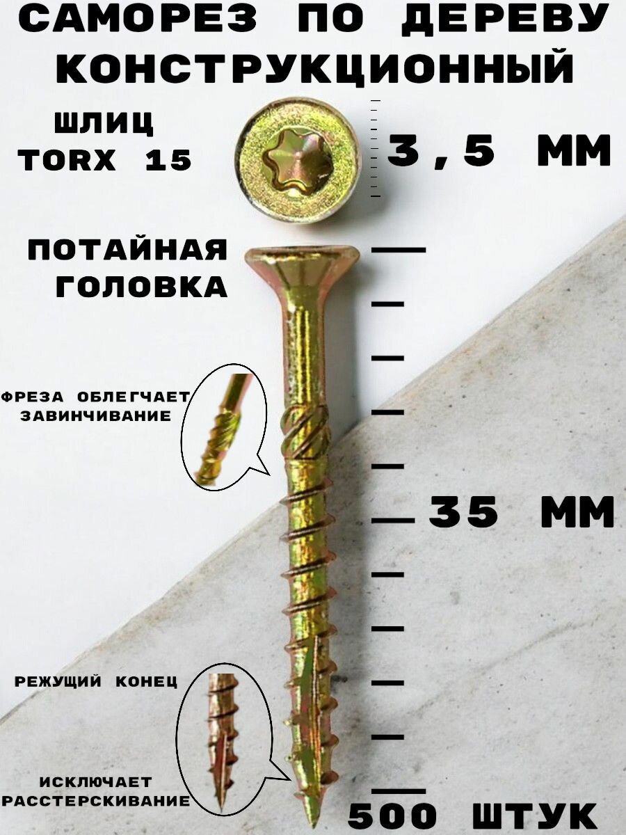 Саморез конструкционный по дереву 4,5*35 HIMTEX потайной