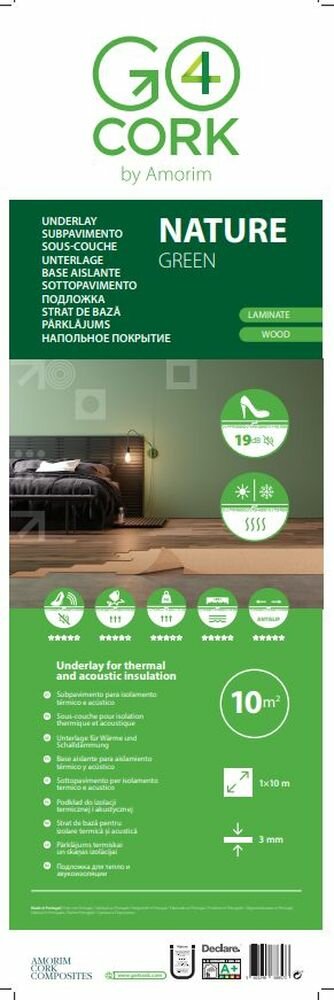 Подложка под напольные покрытия GO4CORK NATURE пробка 3 мм рулонная 10кв. м. интересное: