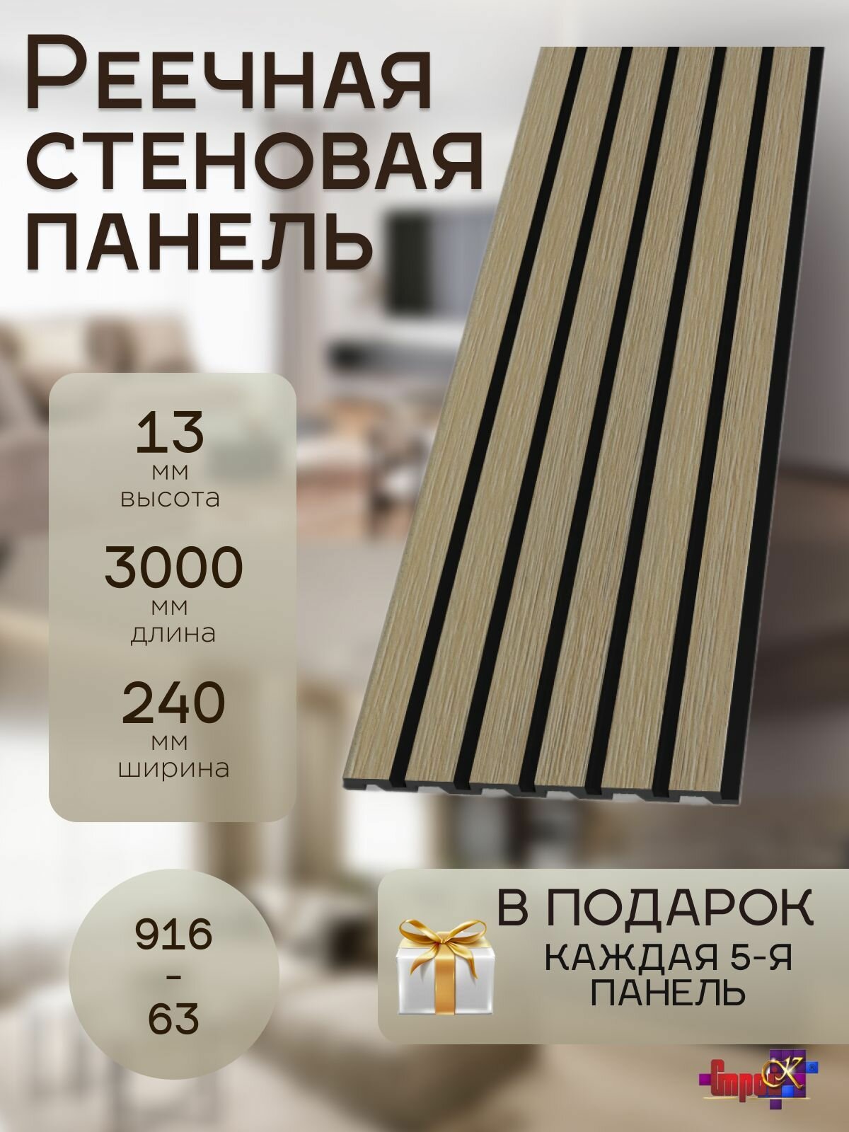 Купить Стеновая панель декоративная 916-63SH (240*13*3000) 3м, 1шт