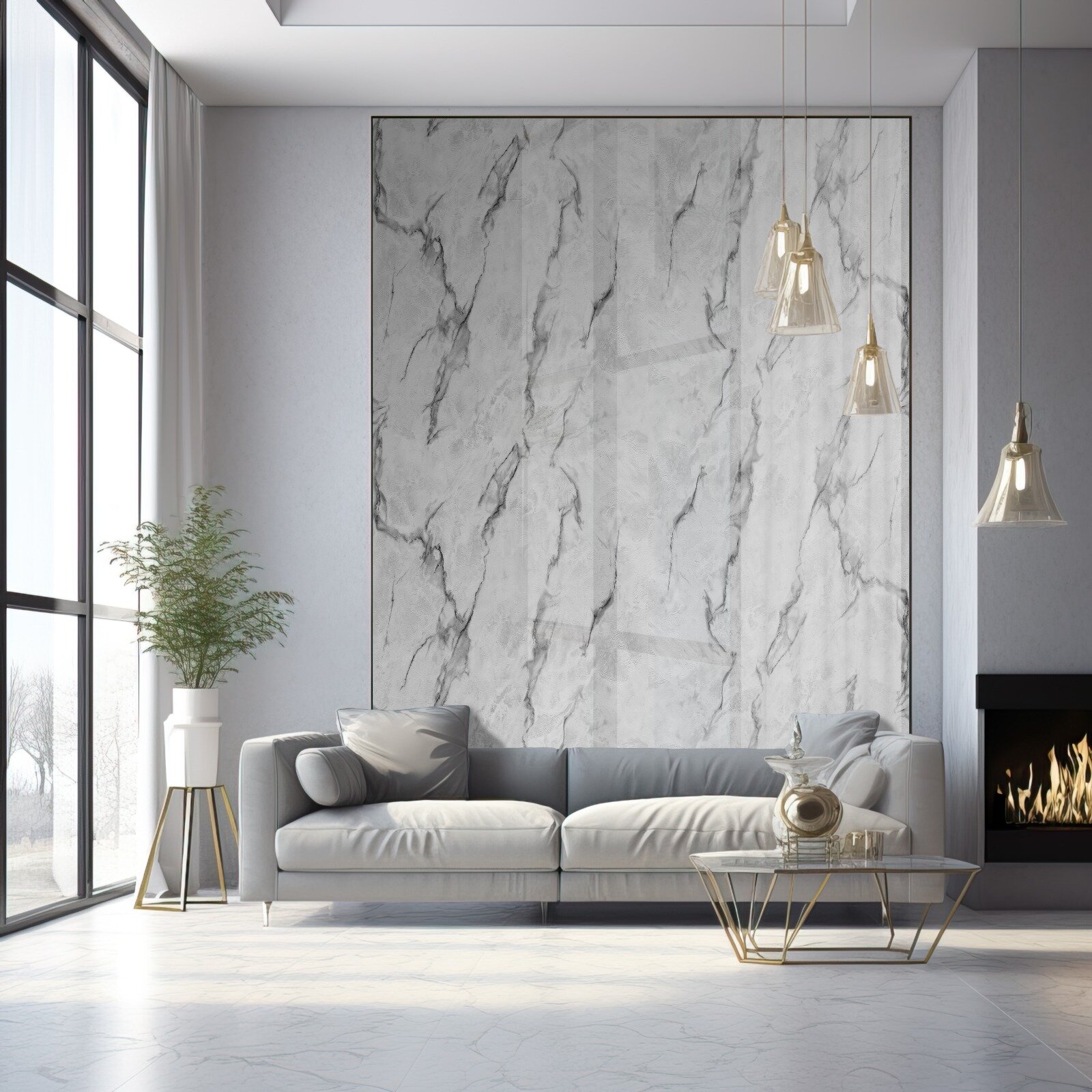 Стеновые панели МДФ Мрамор Белый Калаката Влагостойкие на стену 3 шт. 2440х1220х3,2 мм. РашДекор