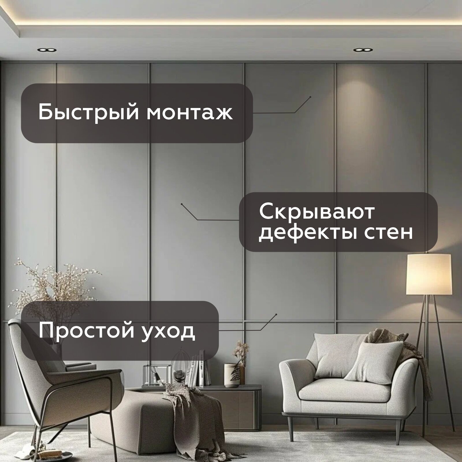 СохранитьСтеновые панели МДФ Серая влагостойкая 3 шт. 2440х1220х3,2 мм. РашДекор интересное: