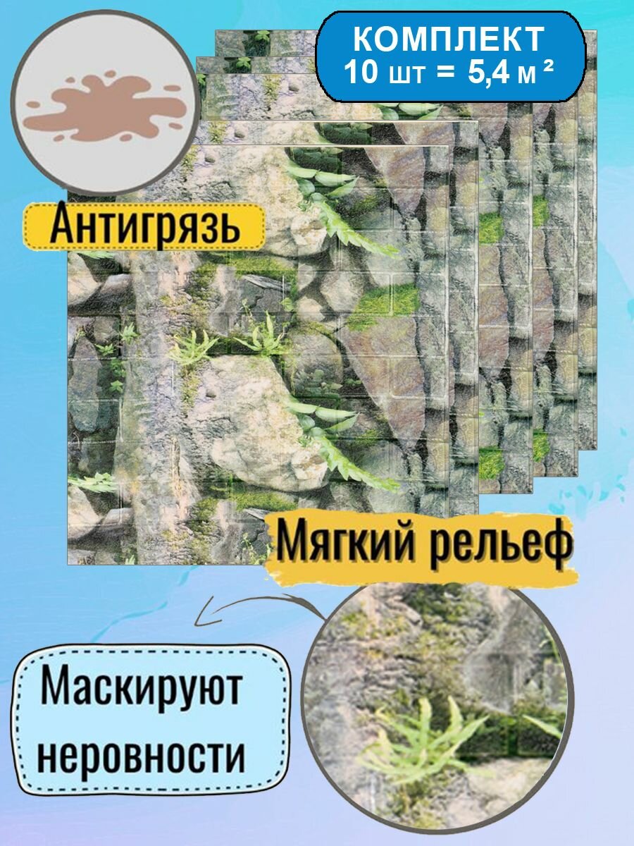 Купить Стеновые самоклеящиеся панели для стен 70х77 "Каменные джунгли" 10 шт.