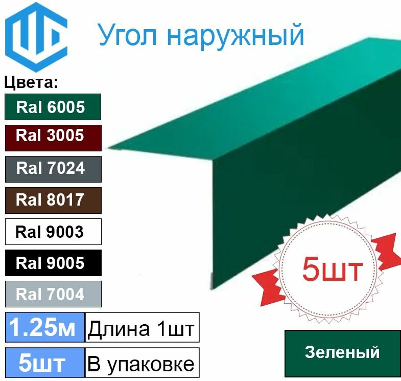 Угол наружный / внешний 50х50 металлический зеленый Ral 6005 (5шт) 1.25м уголок интересное: