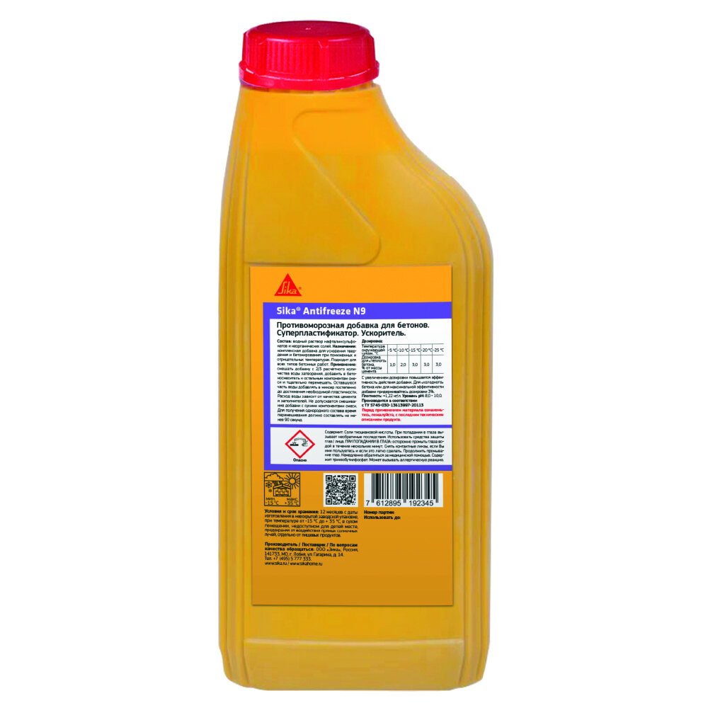 Ускоритель твердения и противоморозная добавка в бетон с пластифицирующими свойствами Sika Antifreeze N9 1 л
