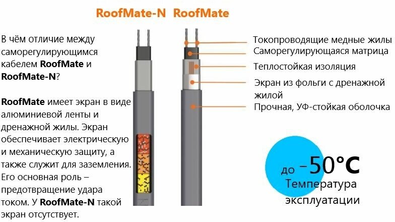 Саморегулирующийся нагревательный кабель для обогрева труб RoofMate 2243163