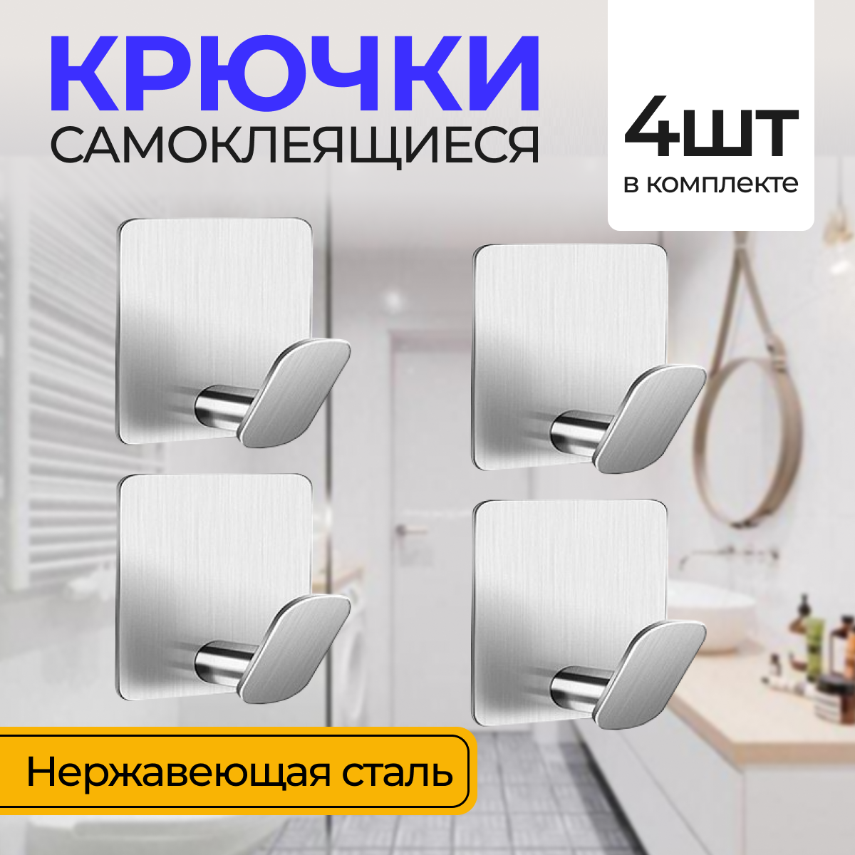 Крючки для ванной самоклеящиеся, 4 шт, серебристый/ Металлические вешалки для полотенец, одежды интересное: