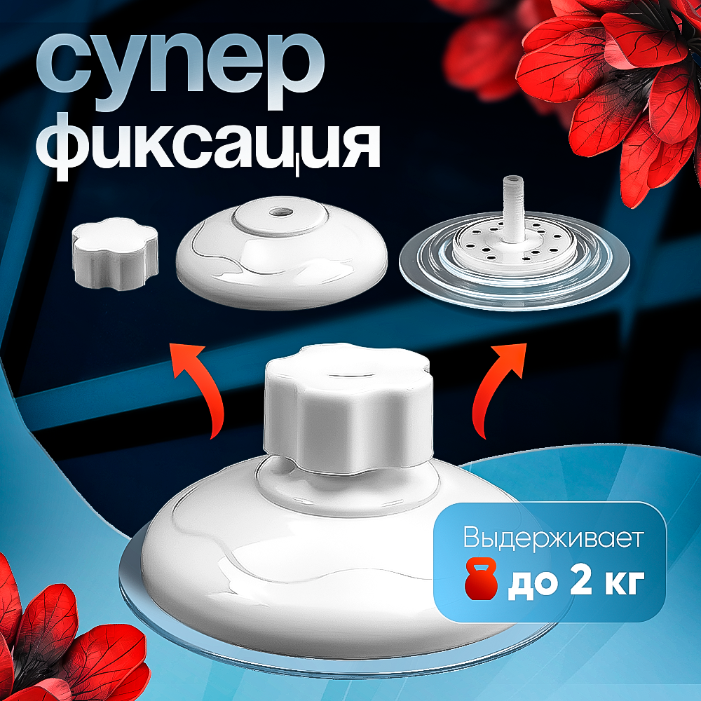 | Комплектация | Присоска из 3-х частей - силиконовое основание с винтом, крышечка из пластика и барашек |