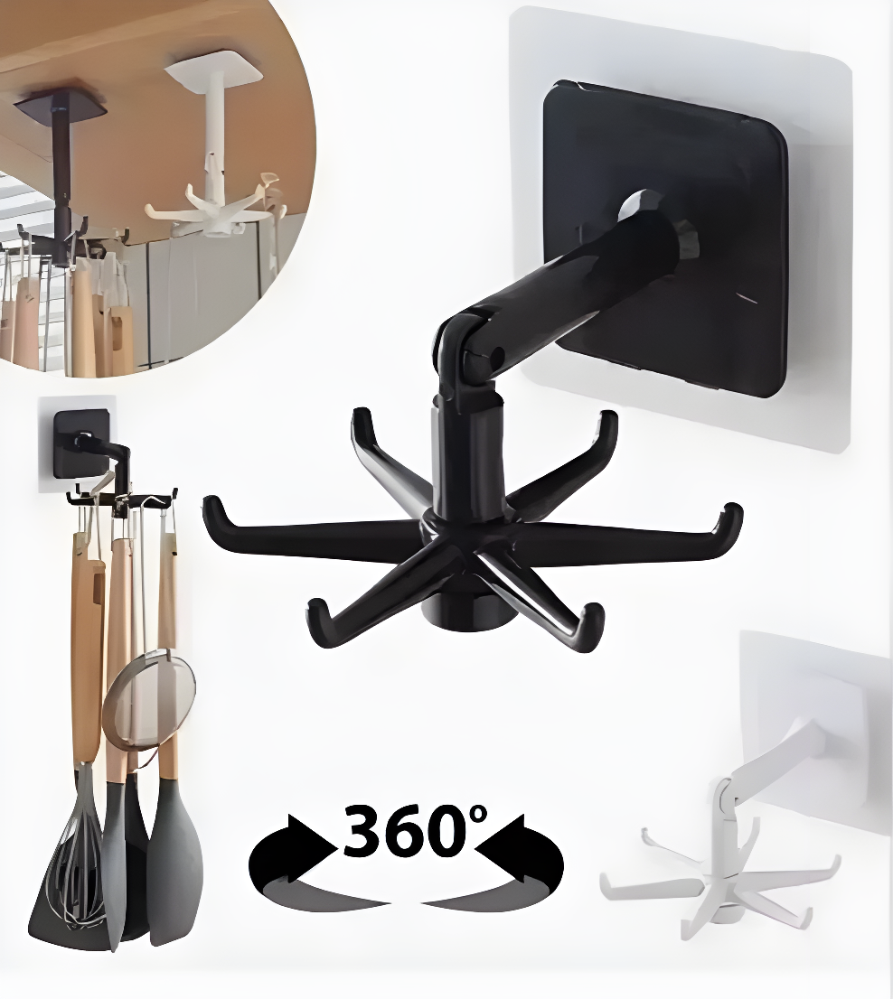 Самоклеющийся настенный поворотный крючок, белый, пластик, 6 крючков