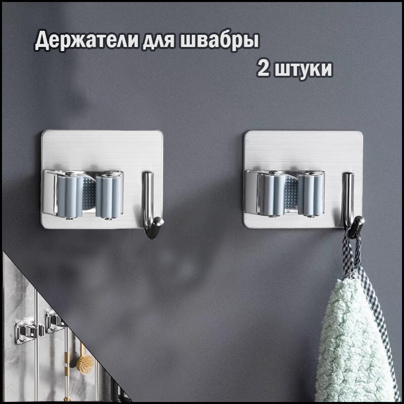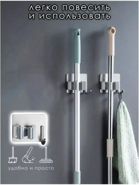 Держатель настенный для швабры/фиксатор инвентаря для уборки, настенный зажим для метлы,2 шт интересное: