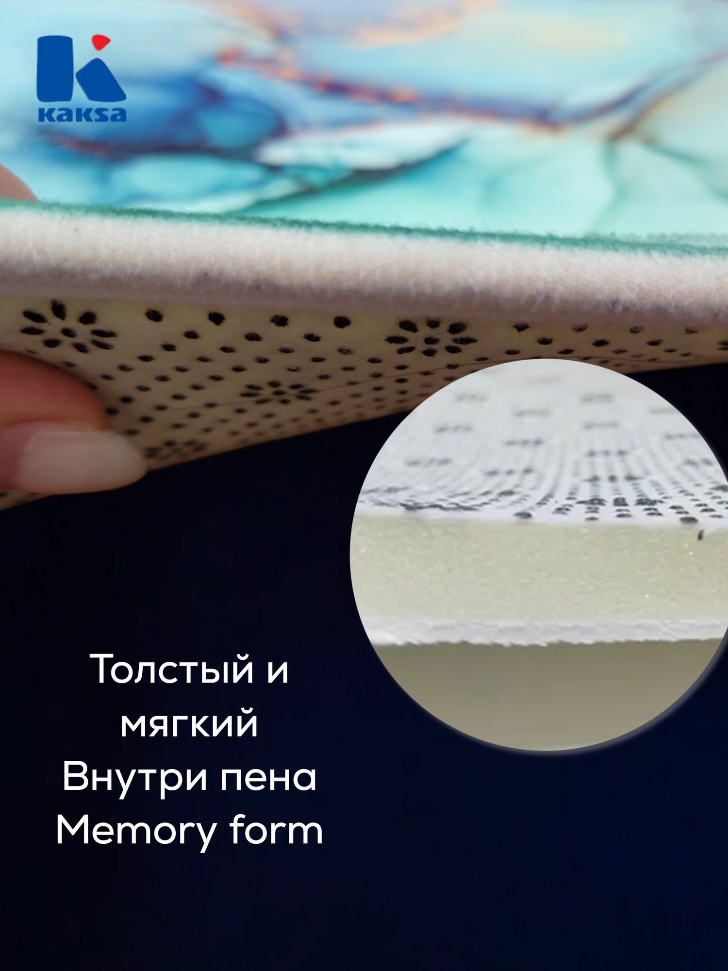 Коврик для ванной "Оникс бирюзовый" (YS-CF1115 МАТ) 45х75 см, Kaksa противоскользящий, камень