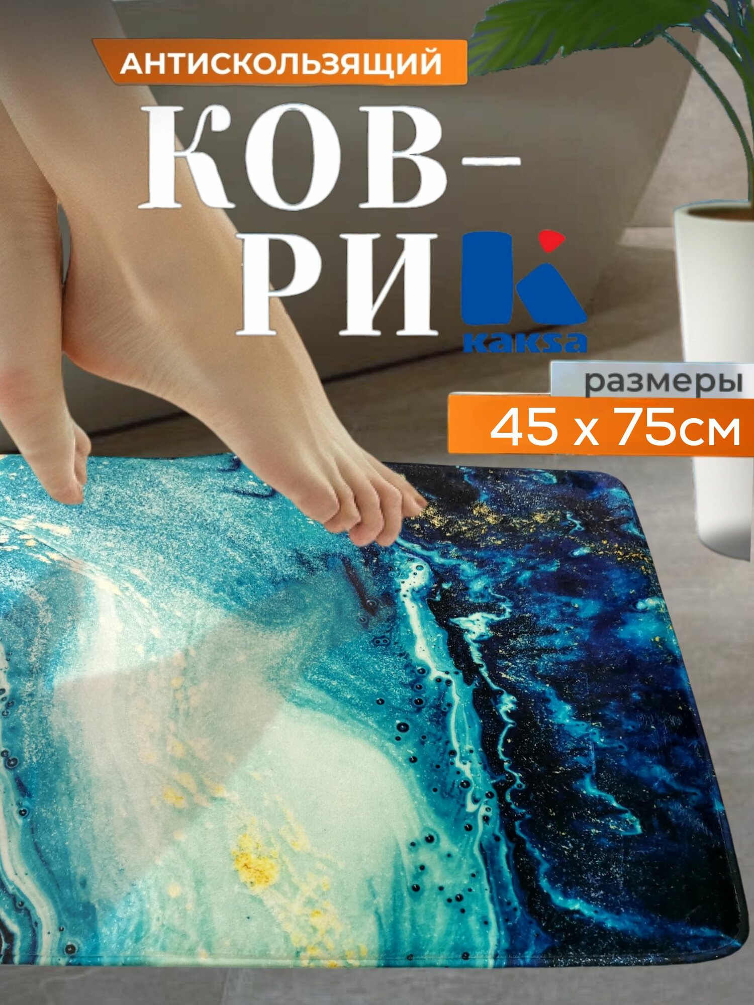 Коврик для ванной "Оникс бирюзовый" (YS-CF1115 МАТ) 45х75 см, Kaksa противоскользящий, камень