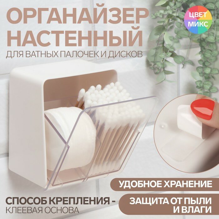 Органайзер д/ват дисков и палочек 2секц навесной с клеев осн 9,2*7*10,7см микс к/кор 9380803