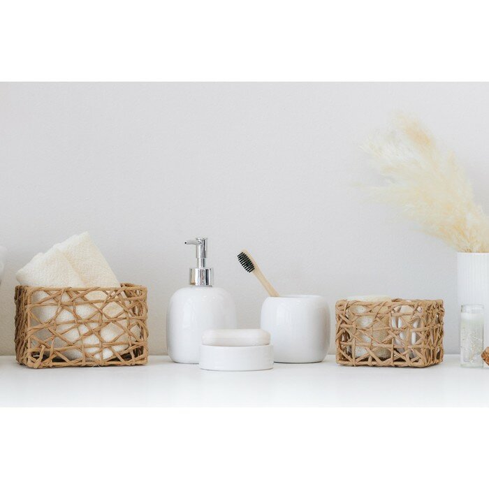 Купить Аксессуары для ванной SAVANNA Monro, 4 предмета: мыльница, дозатор для мыла 450 мл, стакан, баночка, белые