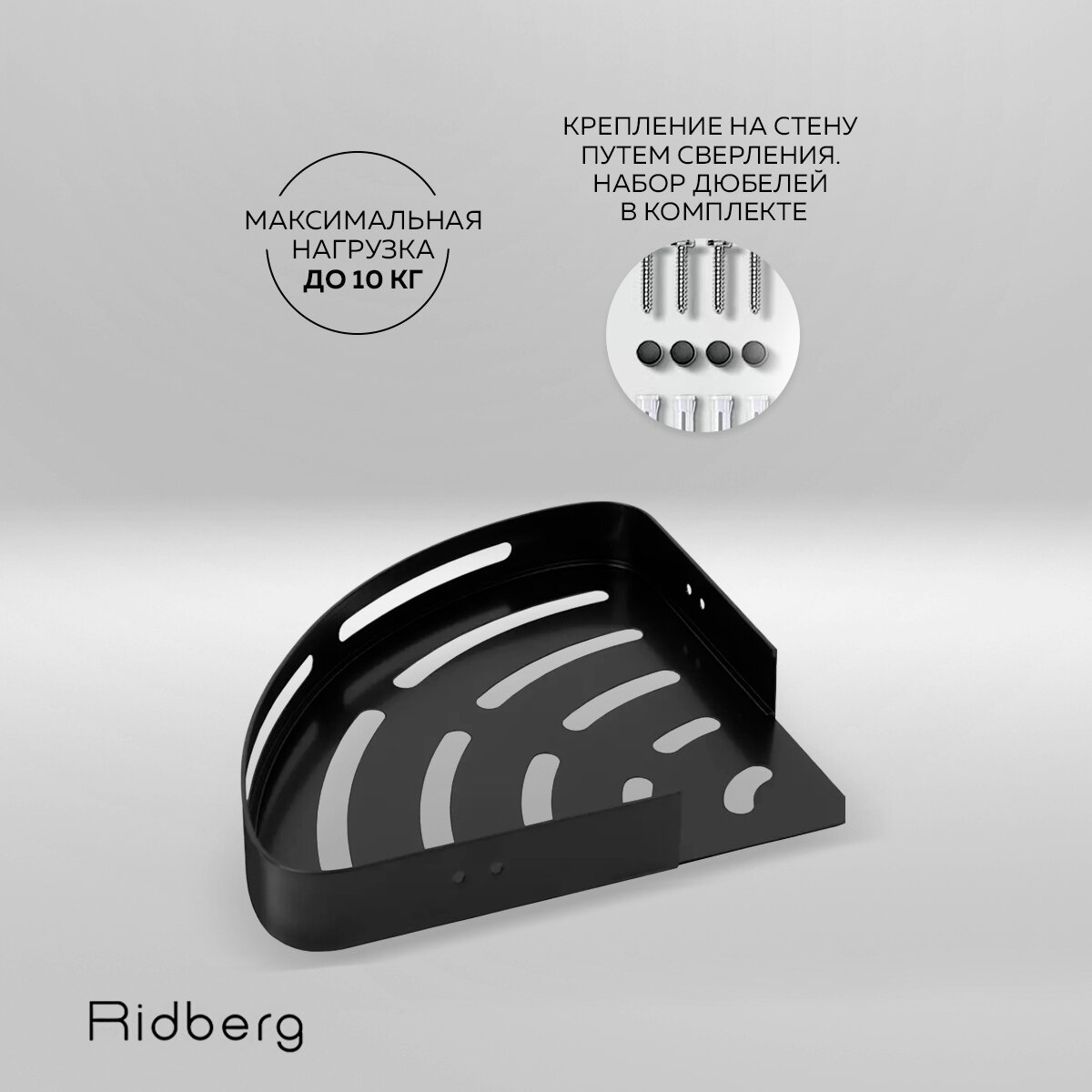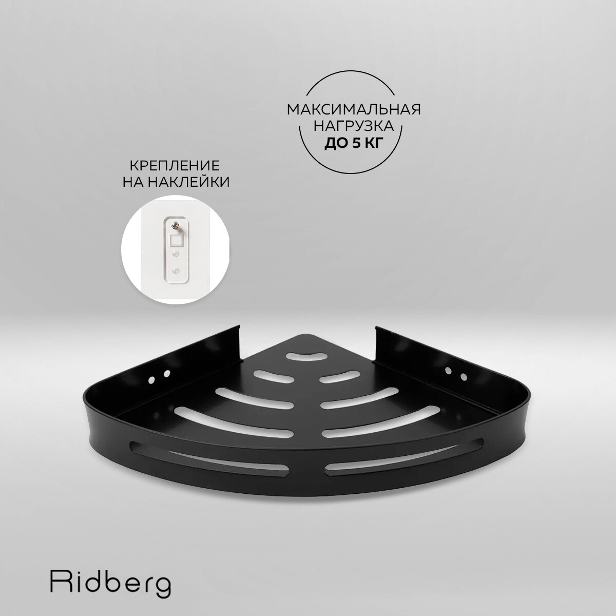 Купить Угловая полка для ванной Ridberg, черная, самоклеящаяся, 3 шт. / Органайзер в ванную