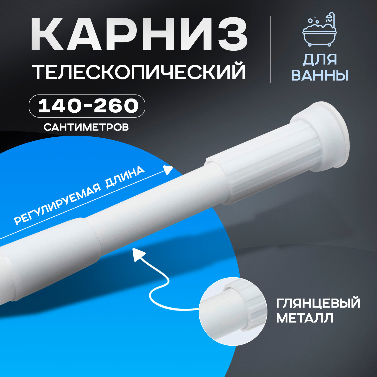 Карниз для ванной Доляна, телескопический, 140-260 см, белый интересное: