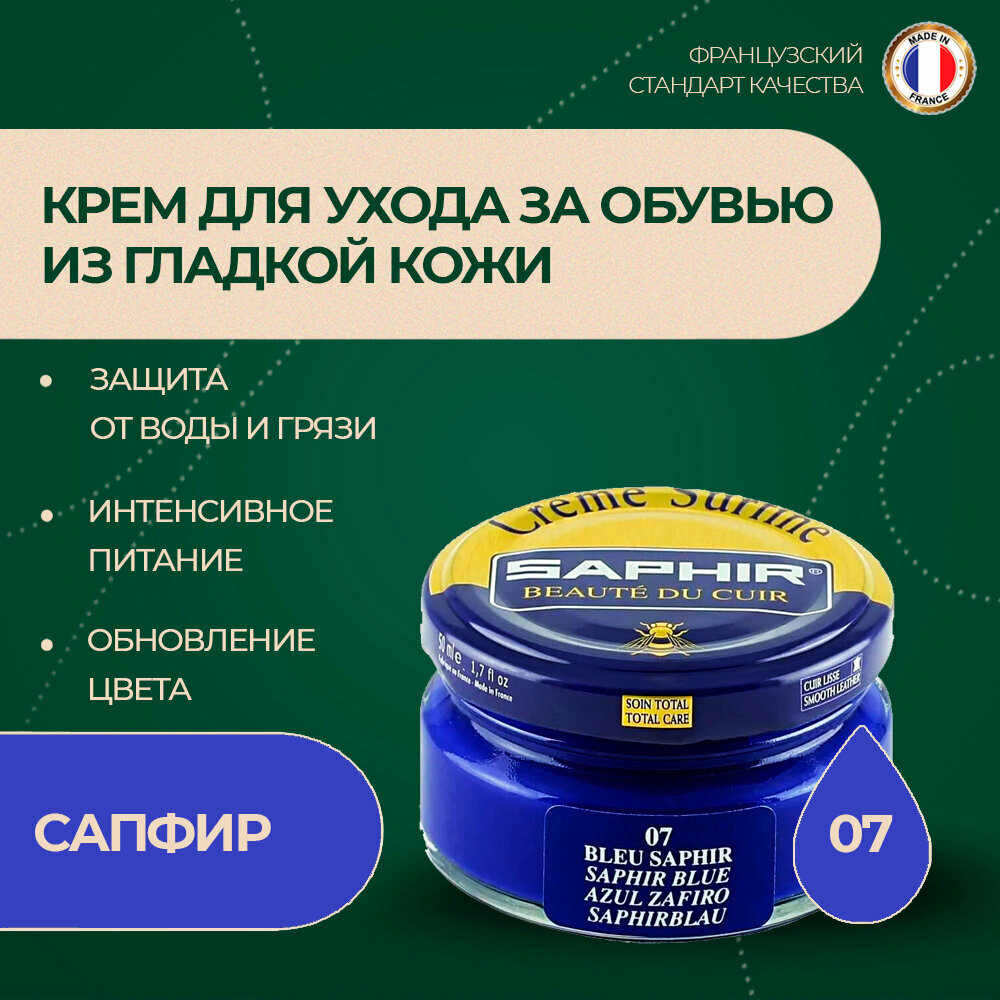 Купить Крем Saphir Creme Surfine для обуви из гладкой кожи 50 мл, цвет 07 сапфир