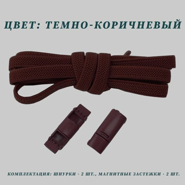 Купить Шнурки эластичные для обуви с магнитными застёжками в цвет шнурков, 2 шт, длина 1 м, темно-коричневые