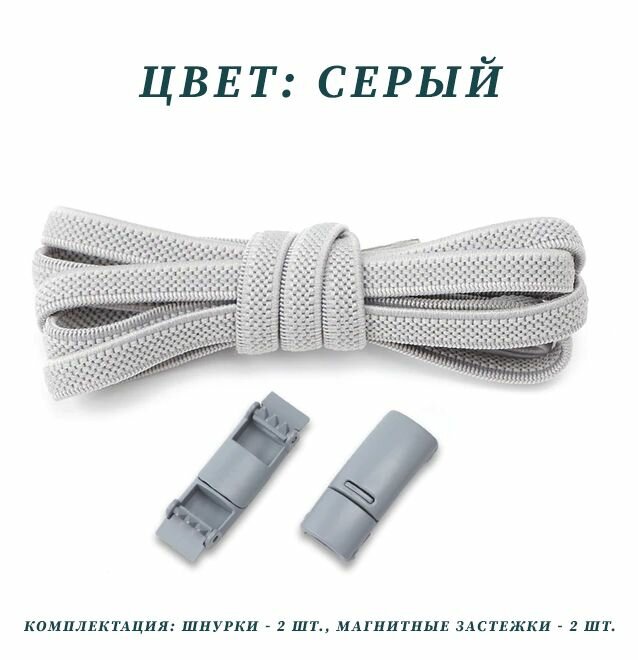 Купить Шнурки эластичные для обуви с магнитными застёжками в цвет шнурков, 2 шт, длина 1 м, серые