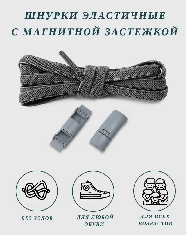 Шнурки эластичные для обуви с магнитными застёжками в цвет шнурков, 2 шт., длина 1 м, серые