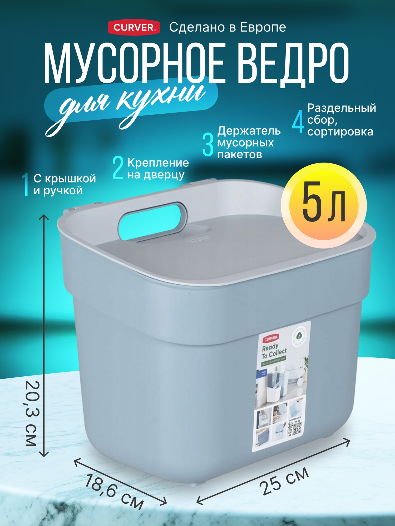 Мусорное ведро для кухни и дома Curver Ready to collect 5 литров