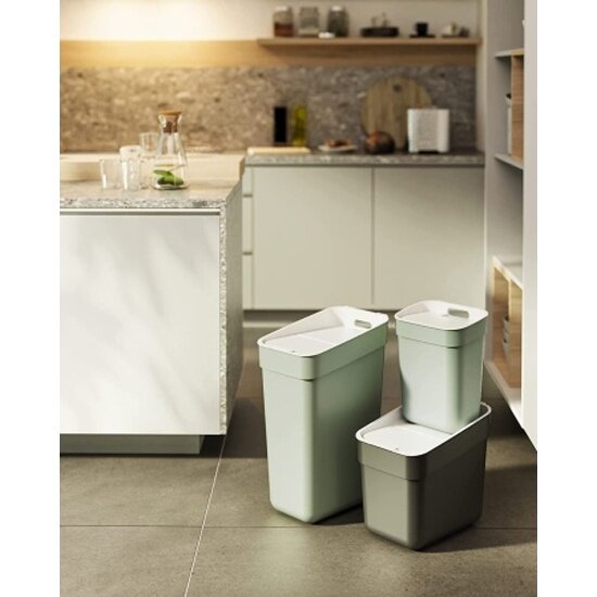 Мусорное ведро с крышкой для кухни, для дома и офиса, Curver Ready to collect 20 литров, 2102 зеленый/св. серый