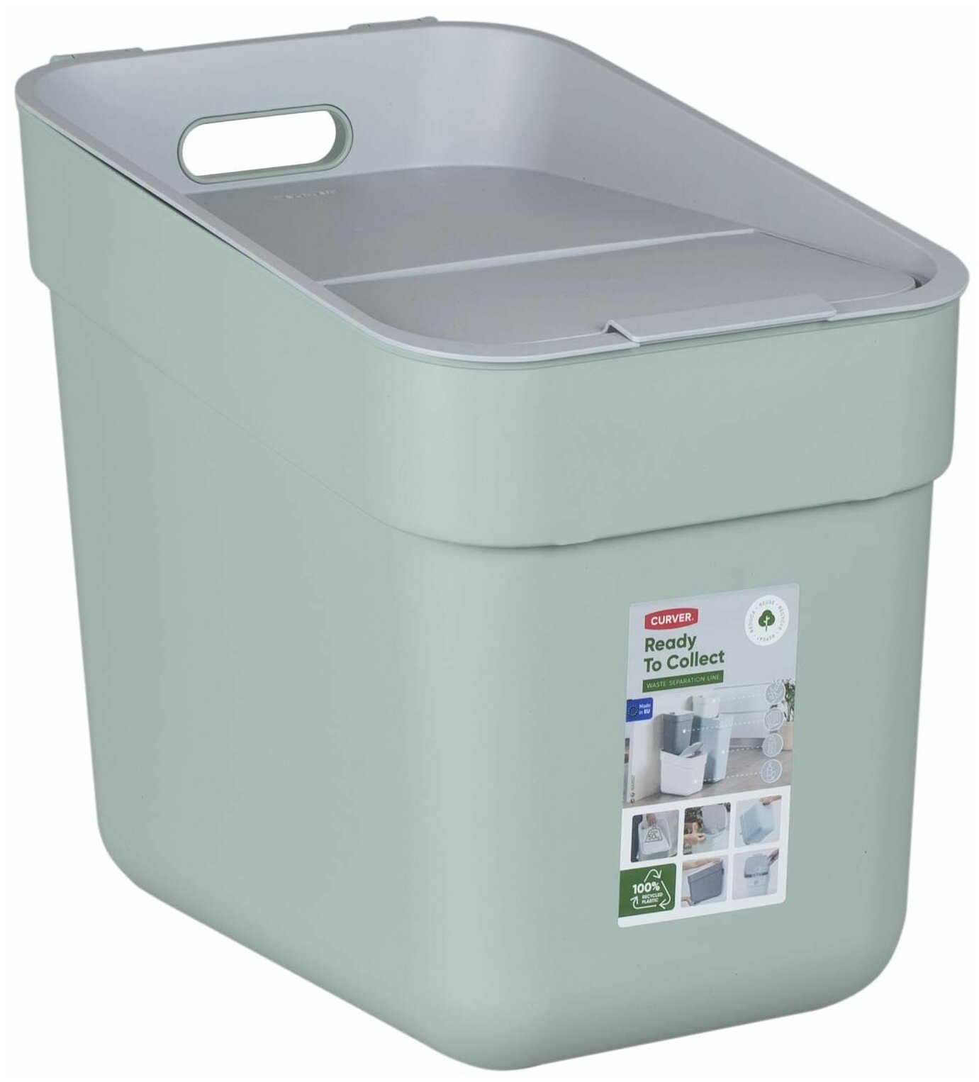 Купить Мусорное ведро с крышкой для кухни, для дома и офиса, Curver Ready to collect 20 литров, 2102 зеленый/св. серый