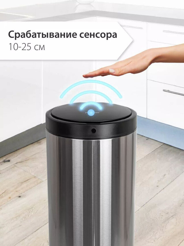 Сенсорное мусорное ведро с крышкой металлическое Pioneer WB424S, 42 литра интересное: