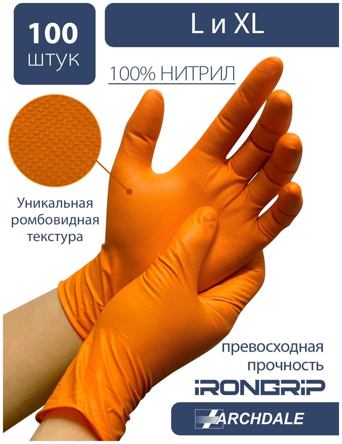 Нитриловые перчатки ARCHDALE IRONGRIP, L, 100шт, 50 пар, оранжевые, повышенная прочность интересное: