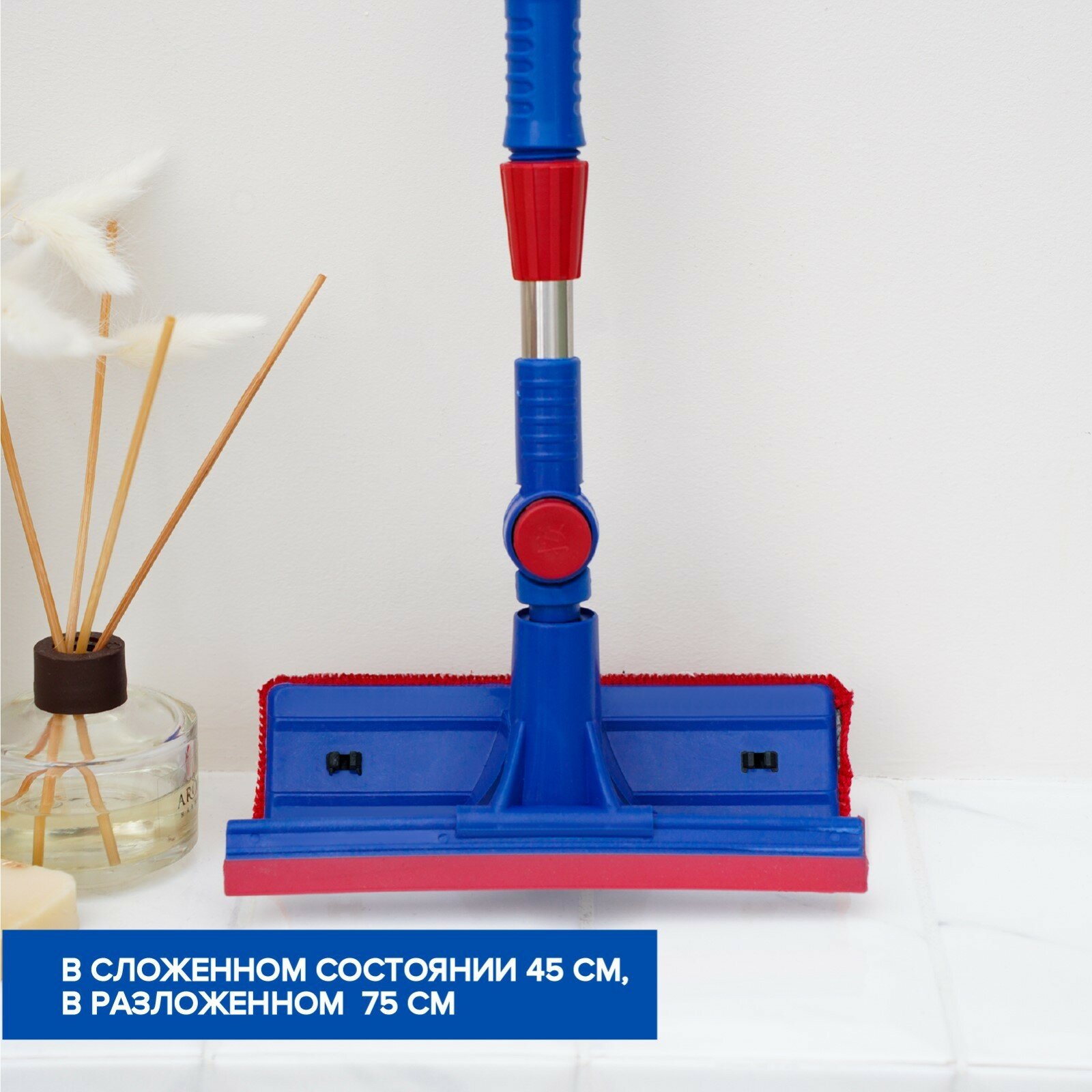 Окномойка с телескопической стальной ручкой и сгоном Доляна, 18×8×55 см, полиэстер, 3092593 интересное: