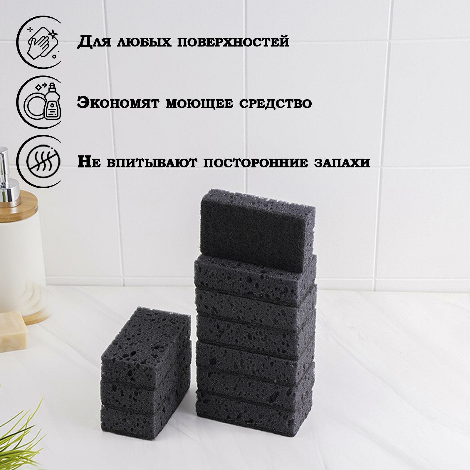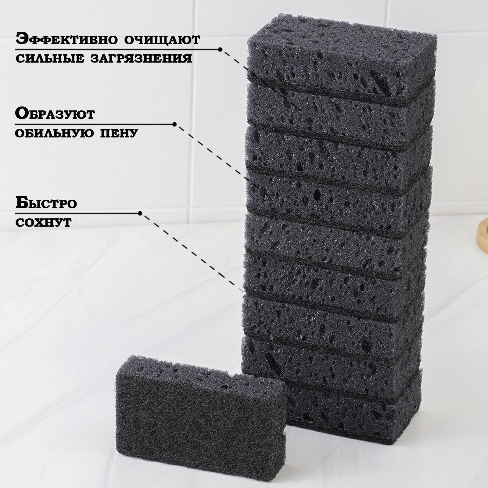 Губки черные для мытья посуды и уборки 10 шт BLACK, крупнопористые интересное: